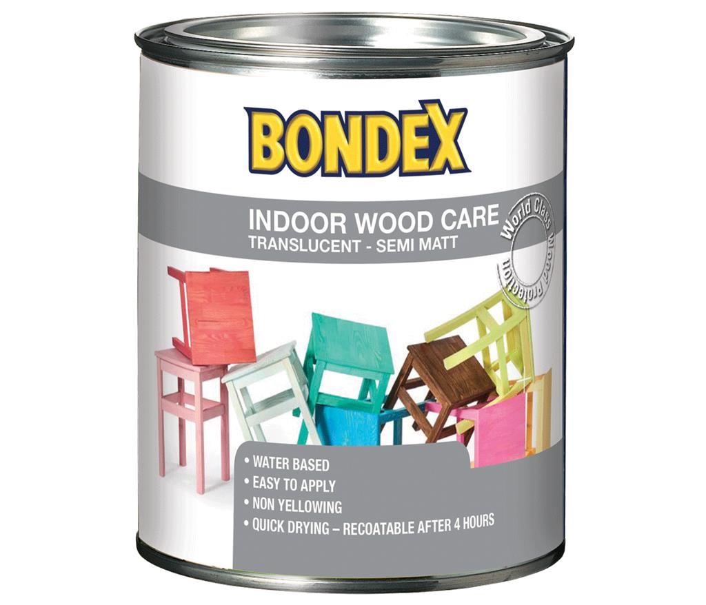 Bondex Indoor Wood Care je premaz na vodni osnovi namenjen uporabi v notranjih bivalnih prostorih. Premaze je možno mešati v več kot 1.400 različnih odtenkih v mešalnici. Barva daje lesu prosojen polmat izgled. Ekološki premaz, ki se hitro suši. Ponovni nanos barve je možno narediti že po štirih urah.