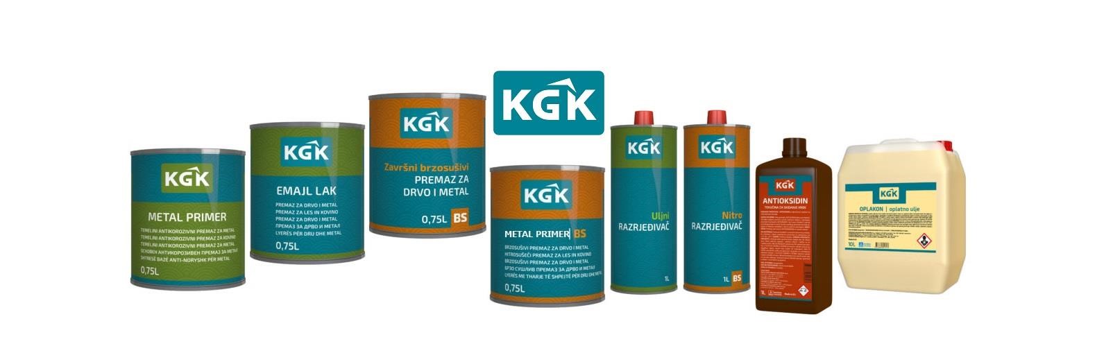 KGK ima v svojem prodajnem programu klasične alkidne in hitrosušeče barve za zaščito lesa in kovin. Paleto barv dopolnjuje tudi ponudba razredčil na nitro in oljni osnovi, izdelki za odstranjevanje rje ter razni ostali materiali s področja gradbene kemije.
