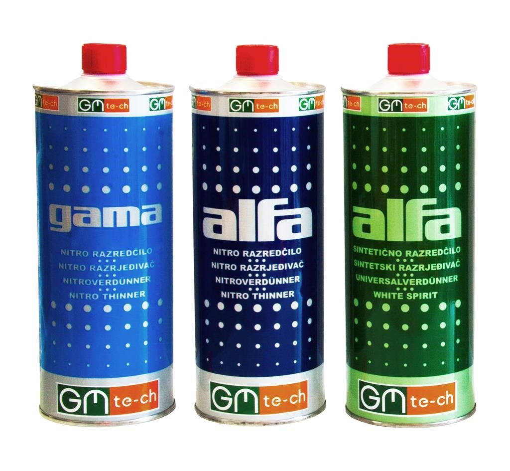 Visoko kakovostna razredčila lastne blagovne znamke GM te-ch. Razredčila, topila, čistila in ostale tehnične kemikalije blagovne znamke CBR.
